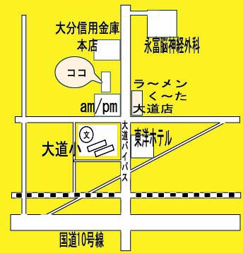 国道10号大道陸橋南交差点を敷戸・戸次方面へ曲がってください。